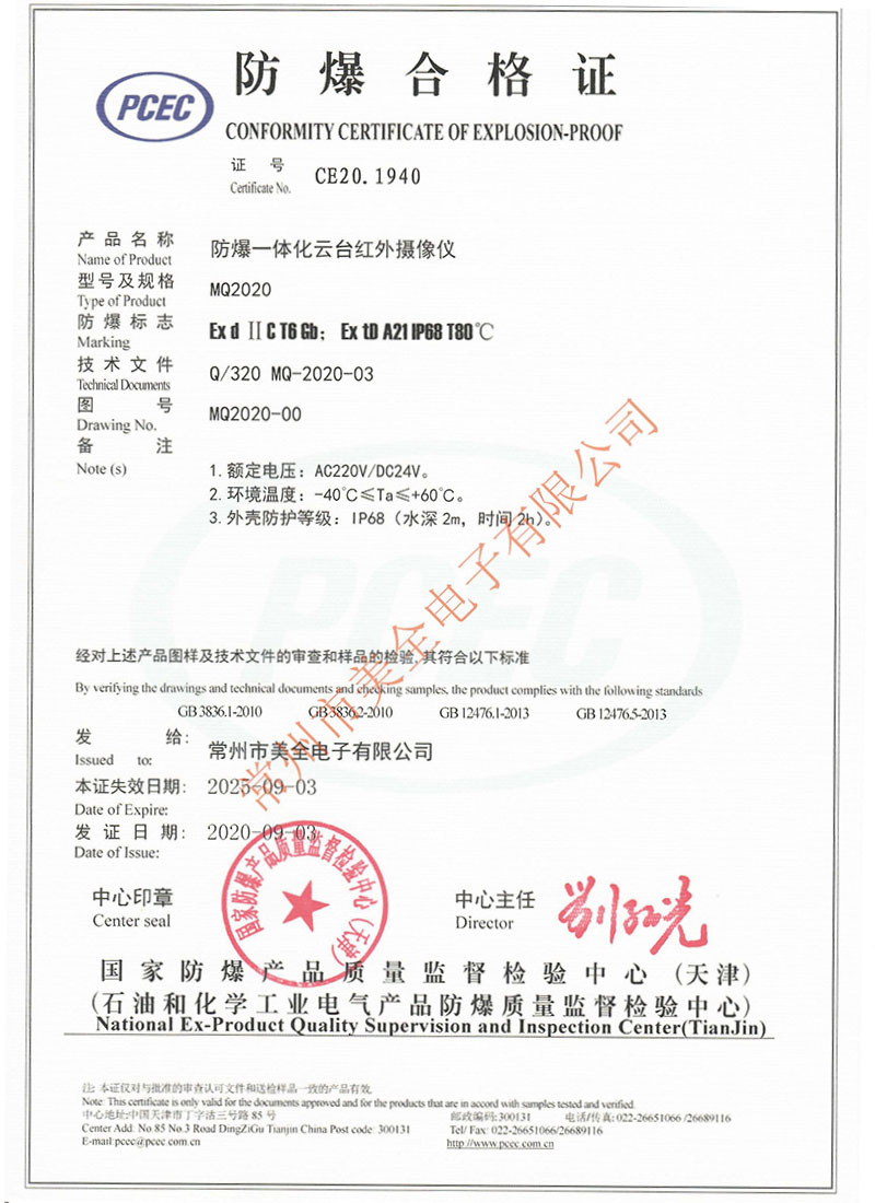 MQ2020防爆一体化云台红外摄像仪(3C证书)